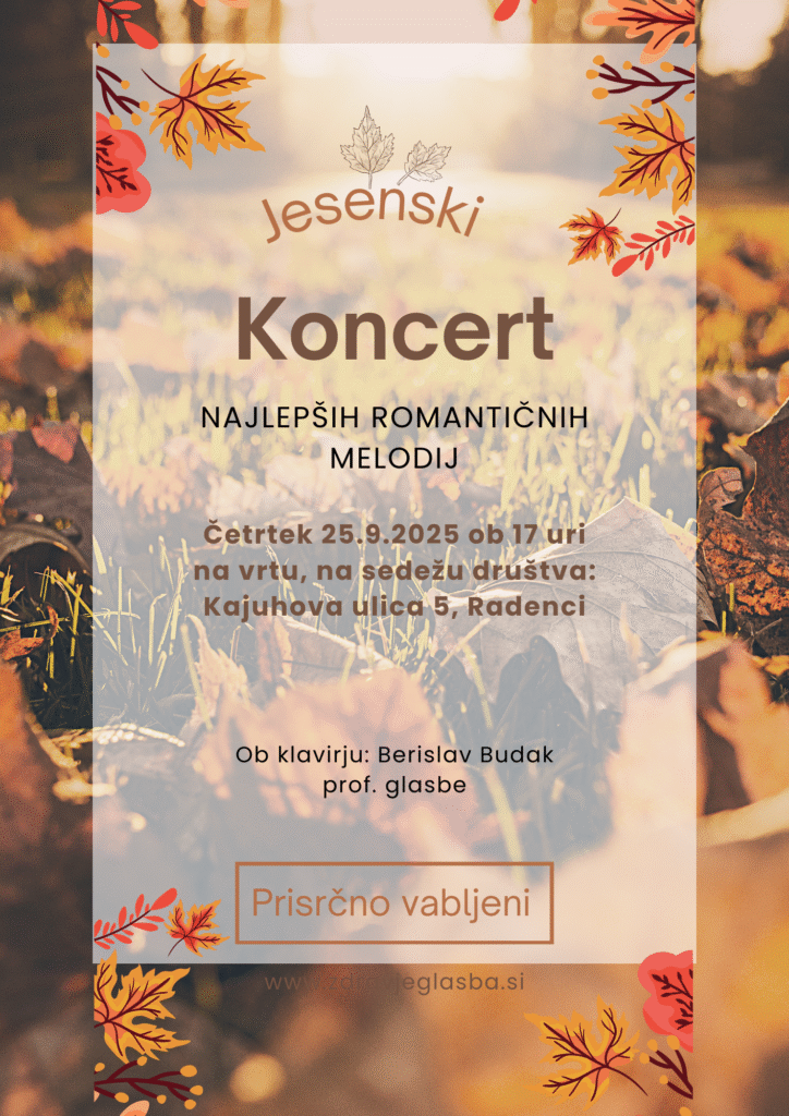 Prisrčno vabljeni na JESENSKI KONCERT Društva zdravje in glasba